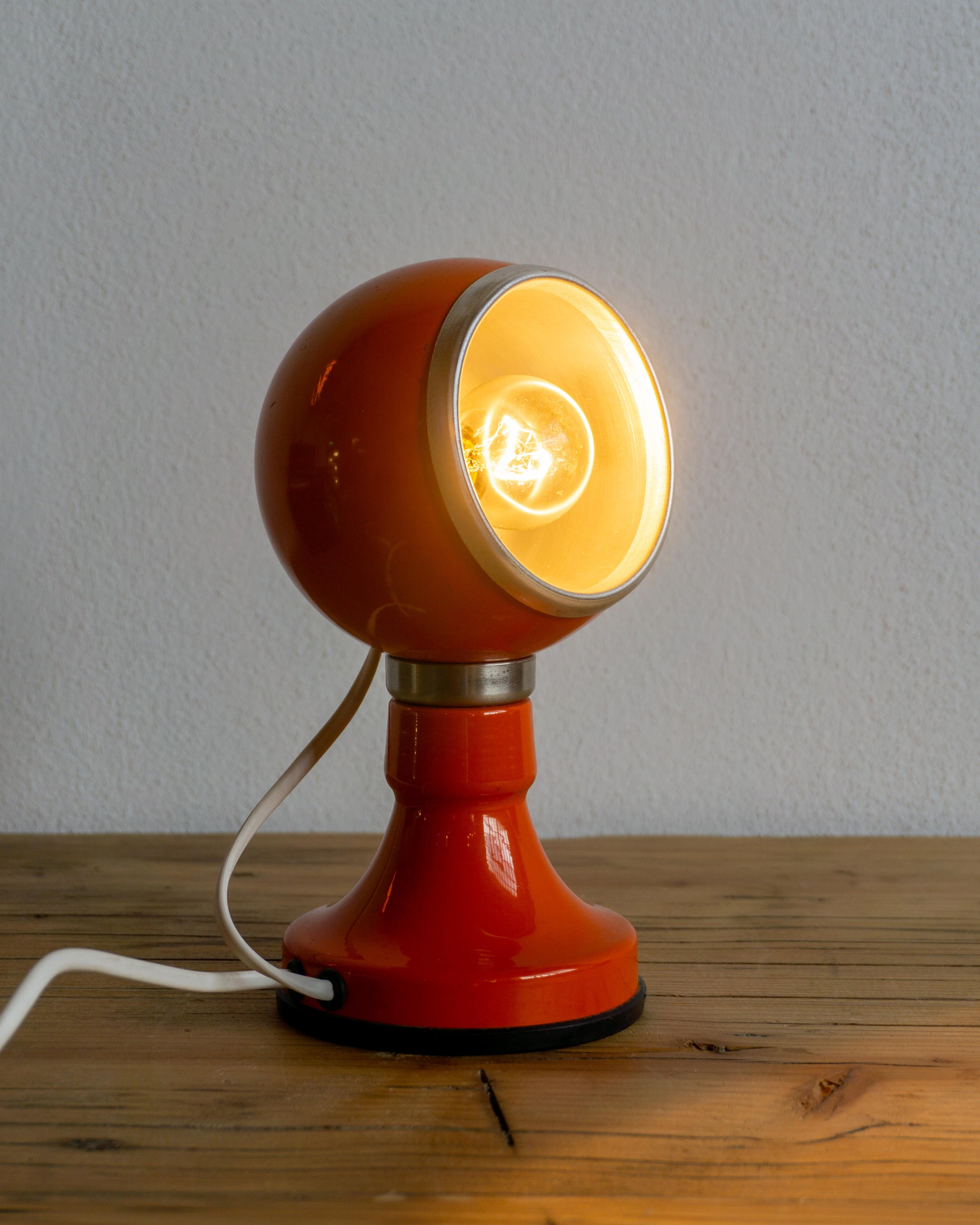 Lampada vintage degli anni ’80 in metallo, color arancione. Dotata di base magnetica che consente un pratico fissaggio su superfici metalliche.