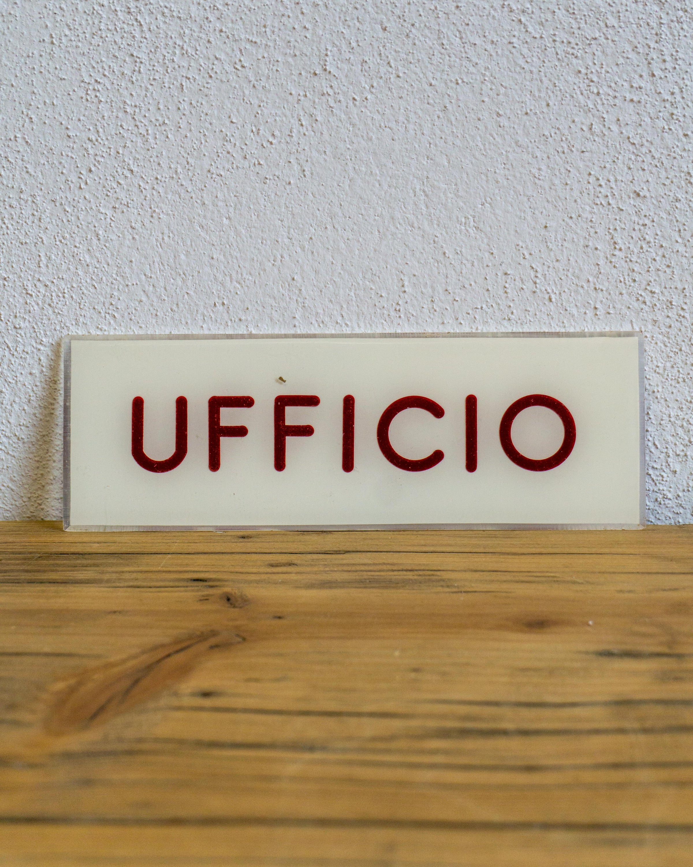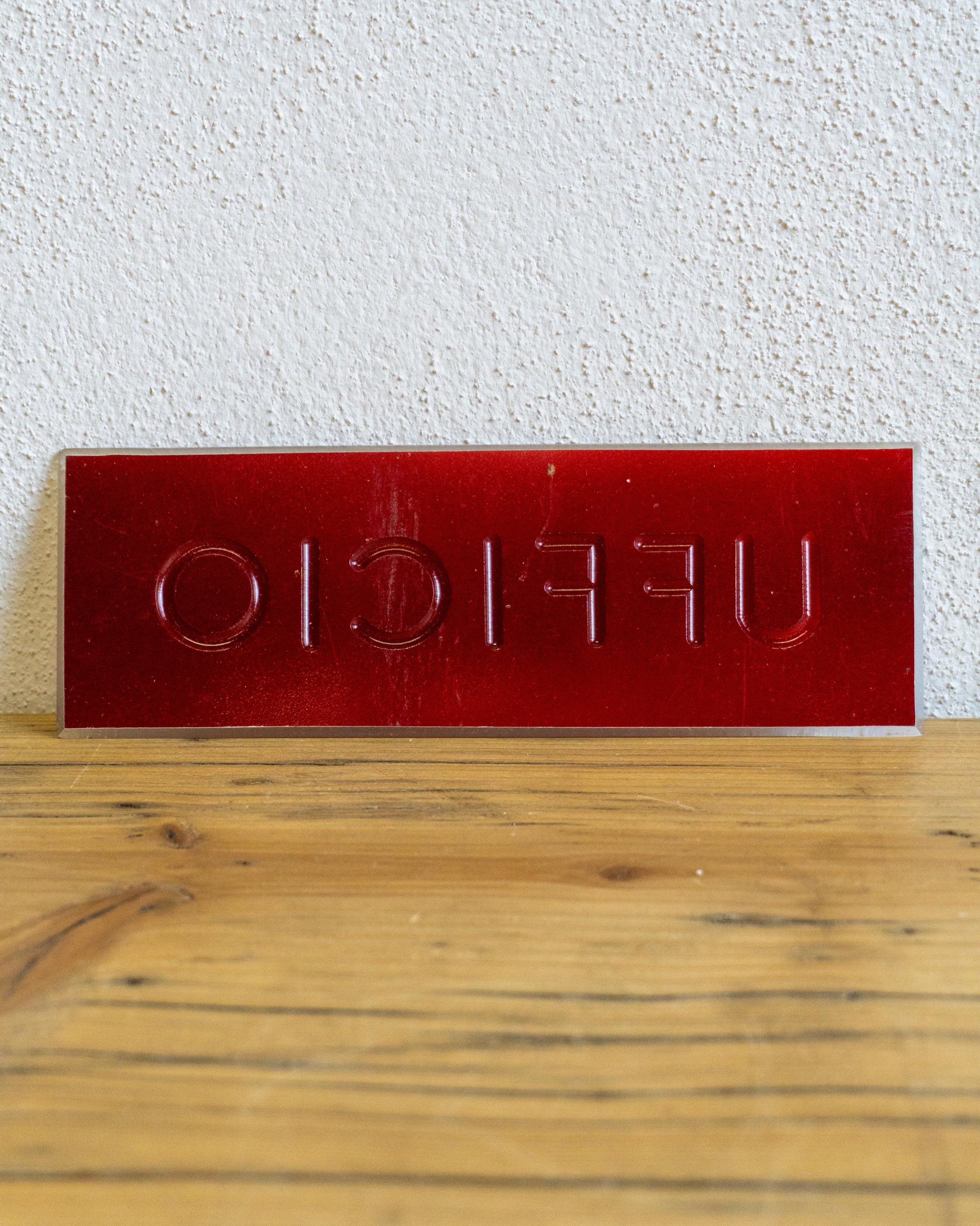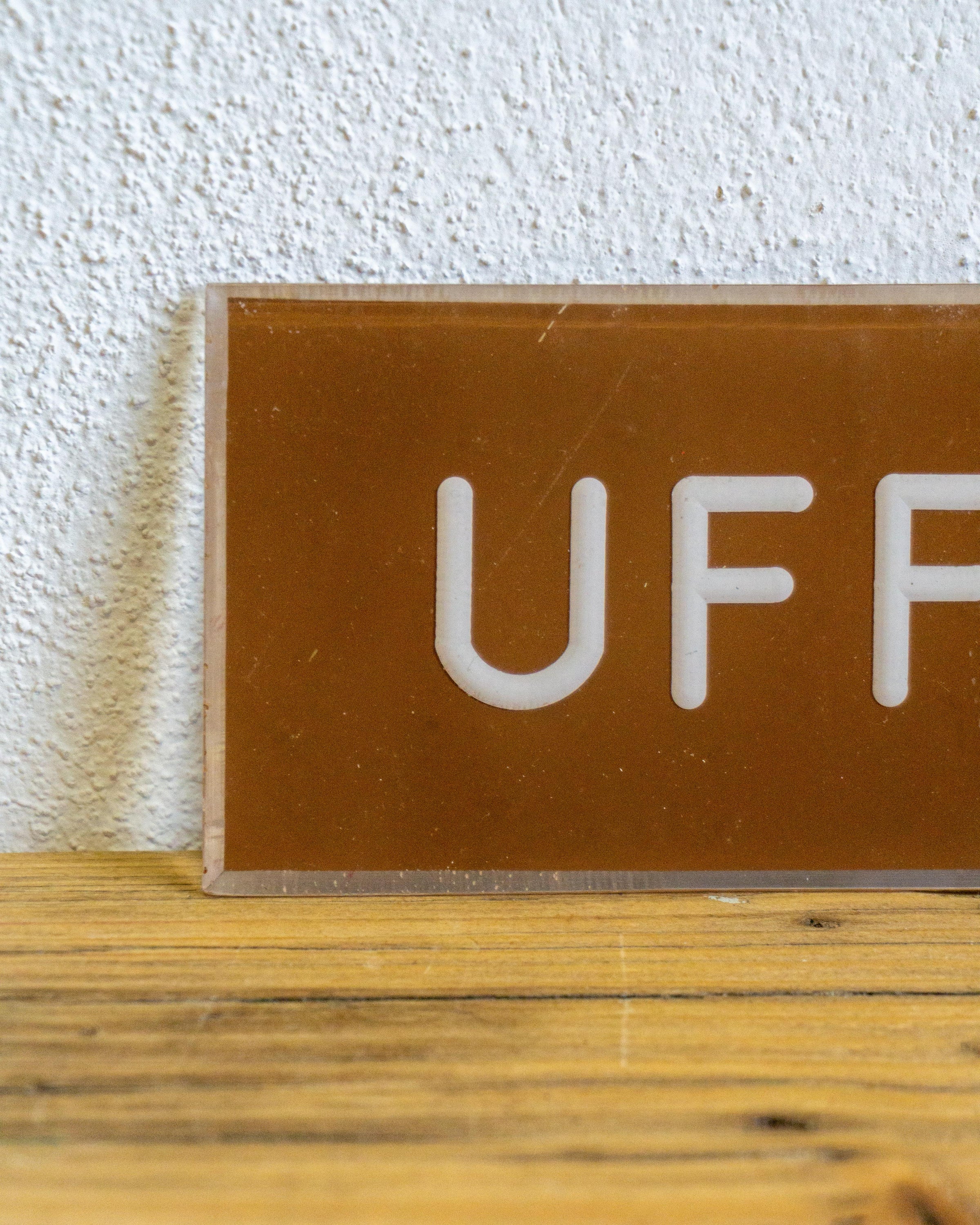 Insegna “Ufficio” originale italiana anni Ottanta in plastica incisa, 18×7 cm. Disponibile in più varianti colore, conserva i normali segni del tempo senza perdere leggibilità. Un autentico pezzo vintage ideale per arredo, collezioni e allestimenti retrò.