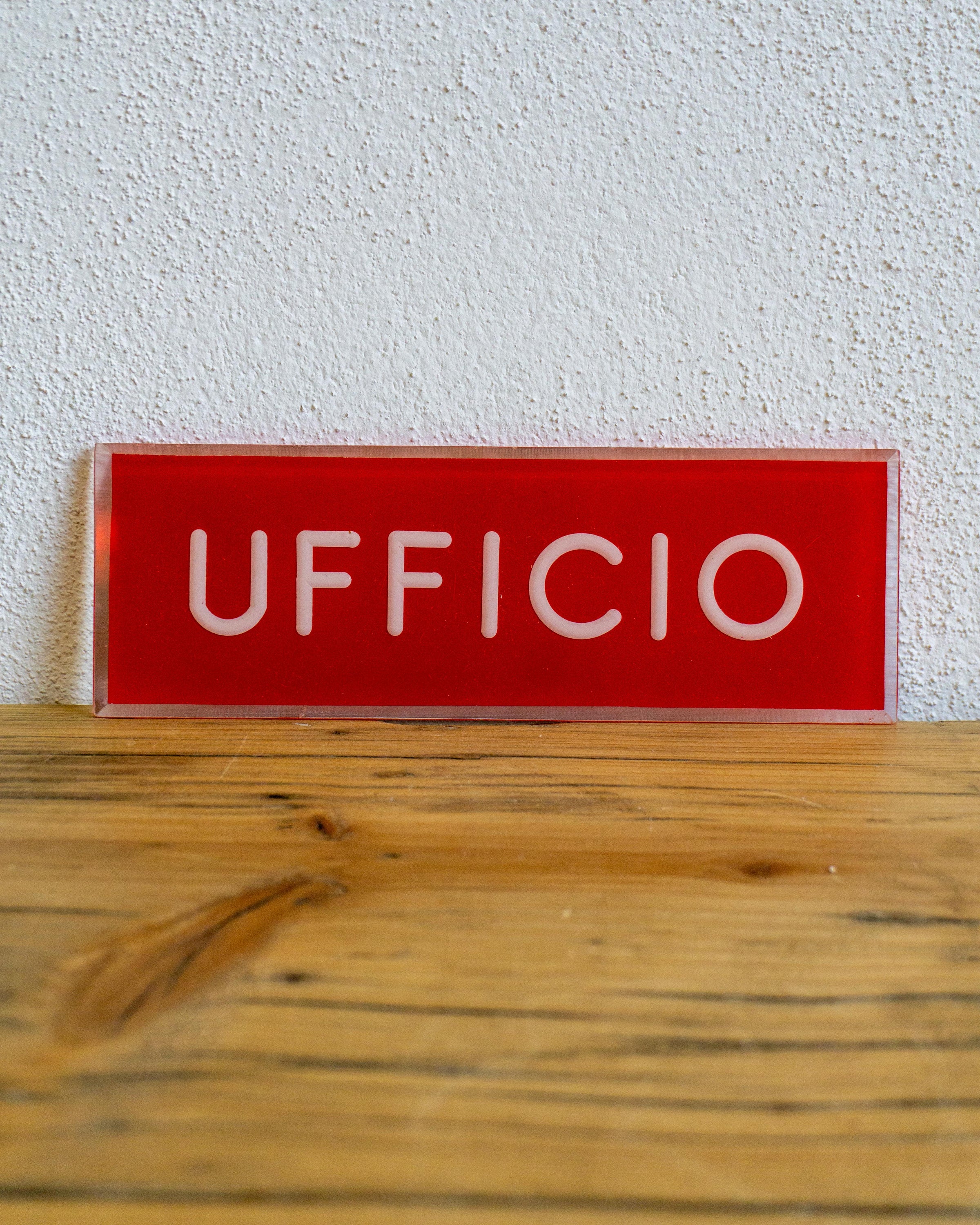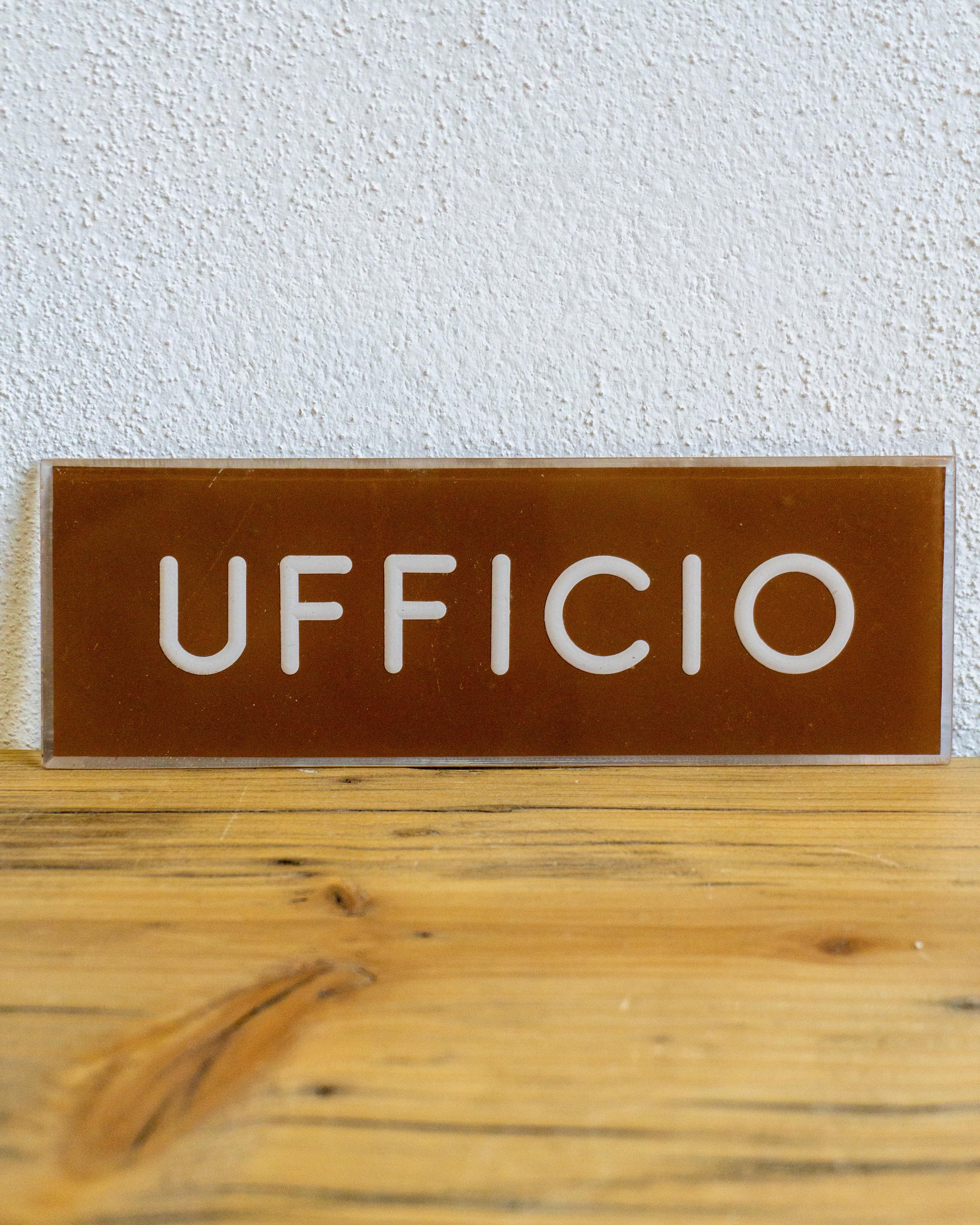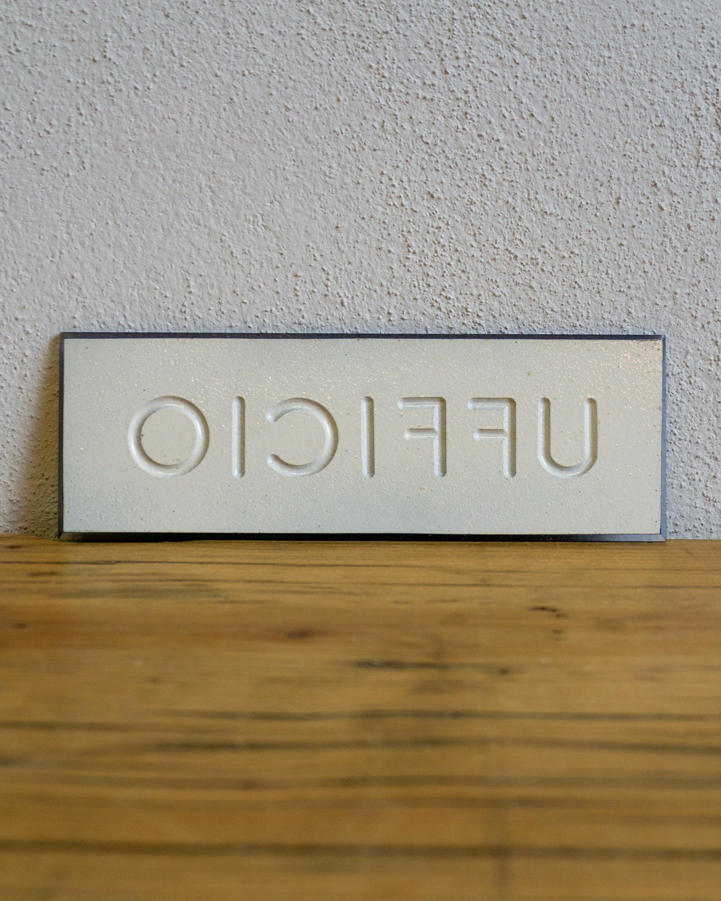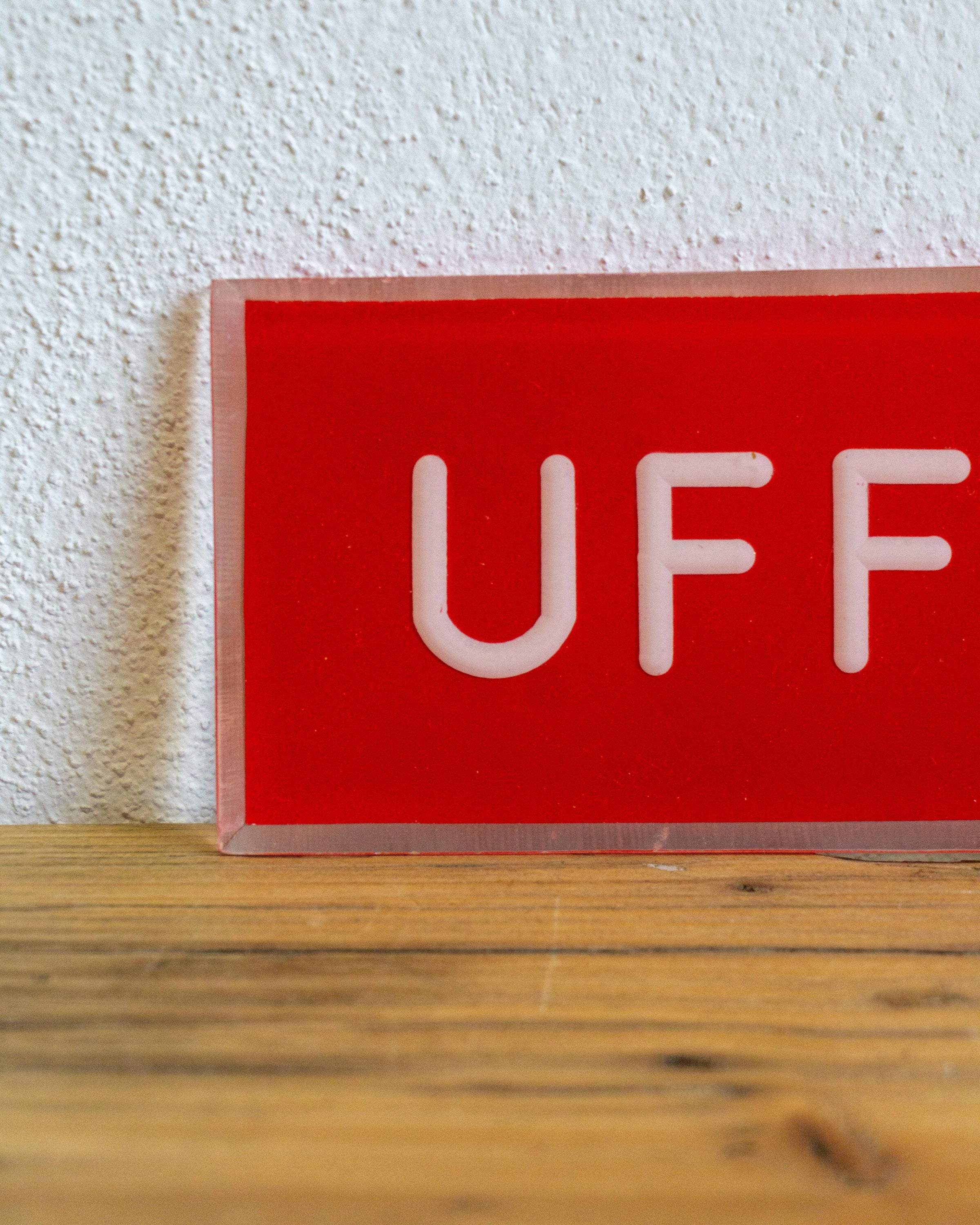 Insegna “Ufficio” originale italiana anni Ottanta in plastica incisa, 18×7 cm. Disponibile in più varianti colore, conserva i normali segni del tempo senza perdere leggibilità. Un autentico pezzo vintage ideale per arredo, collezioni e allestimenti retrò.