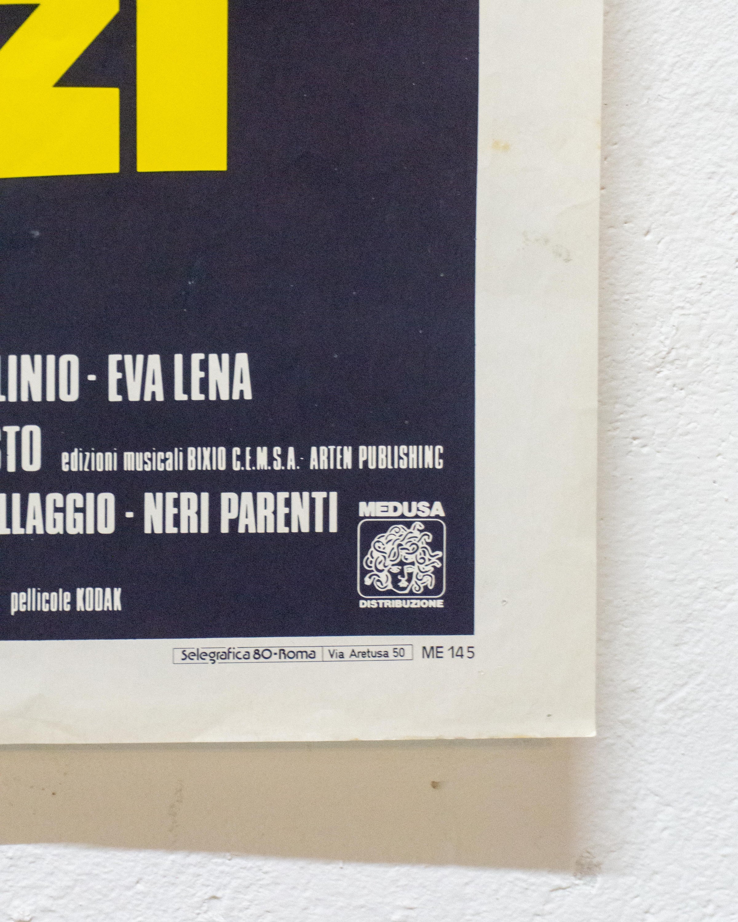 Manifesto cinema 100x140 cm (2F), edizione originale italiana. Stampato per la distribuzione nazionale autentico originale, conserva le caratteristiche tipiche dei manifesti dell’epoca. Presenta pieghe e alcuni segni del tempo visibili nelle fotografie, elementi coerenti con l’età e la provenienza del materiale.