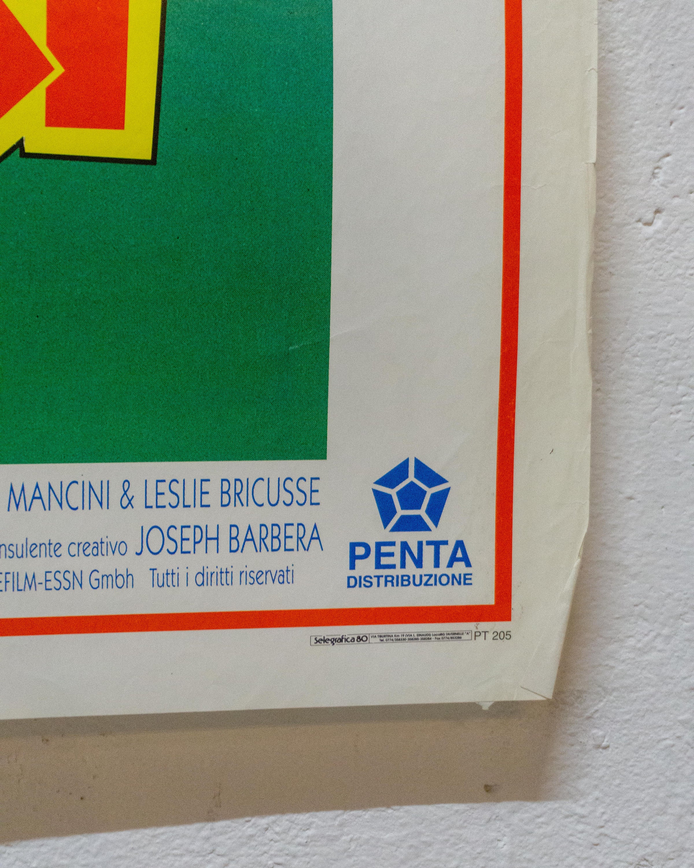 Manifesto cinema 100x140 cm (2F), edizione originale italiana. Stampato per la distribuzione nazionale autentico originale, conserva le caratteristiche tipiche dei manifesti dell’epoca. Presenta pieghe e alcuni segni del tempo visibili nelle fotografie, elementi coerenti con l’età e la provenienza del materiale.