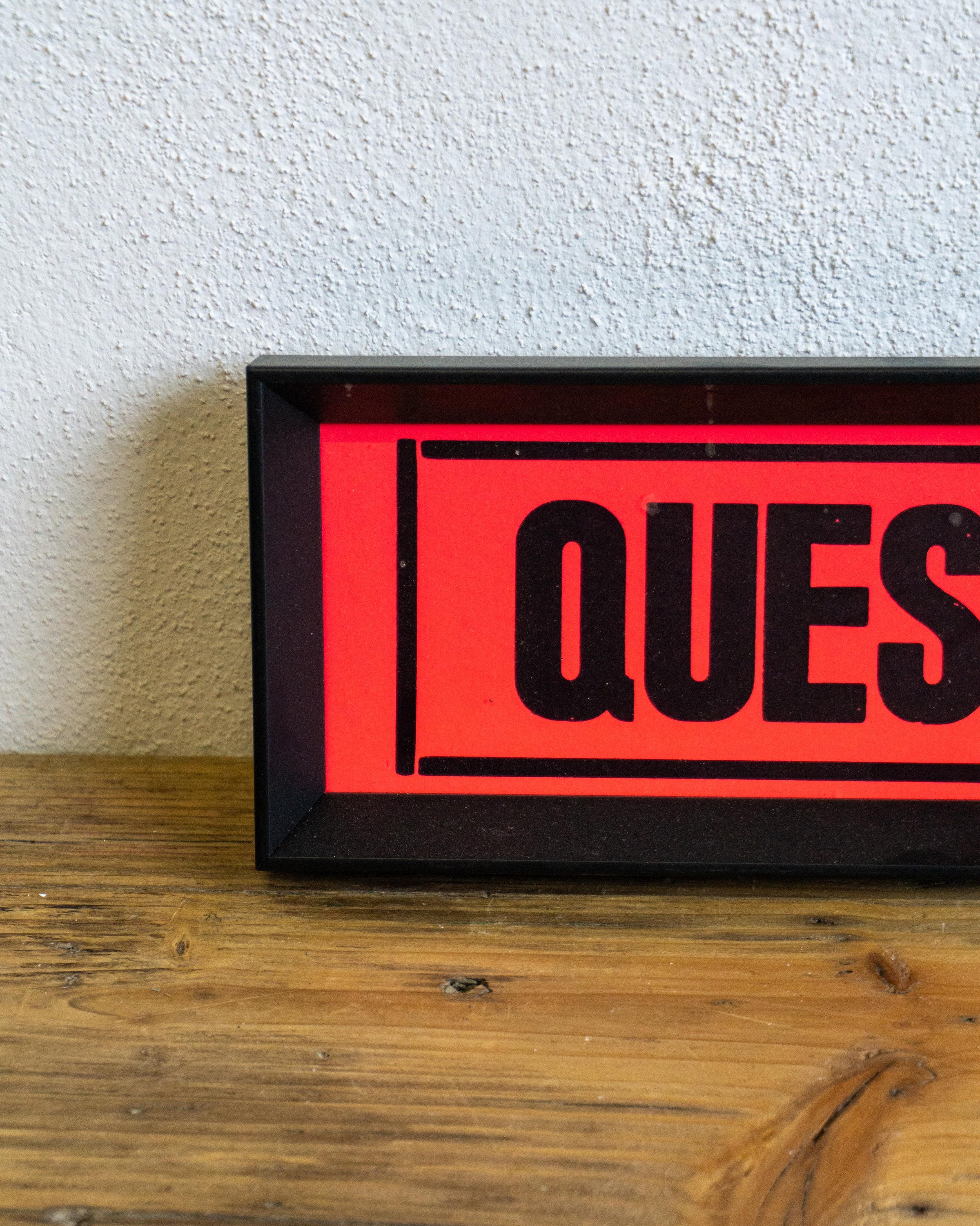 Insegna originale da cinema con la scritta “Questa Sera”, proveniente da una sala cinematografica della Riviera Romagnola. Risalente agli anni ’70/’80, è presentata con cornice in legno e vetro protettivo realizzata su misura da una corniciaia. Un autentico pezzo di segnaletica cinematografica d’epoca, ideale per collezionisti e per arredare spazi con un tocco retrò.