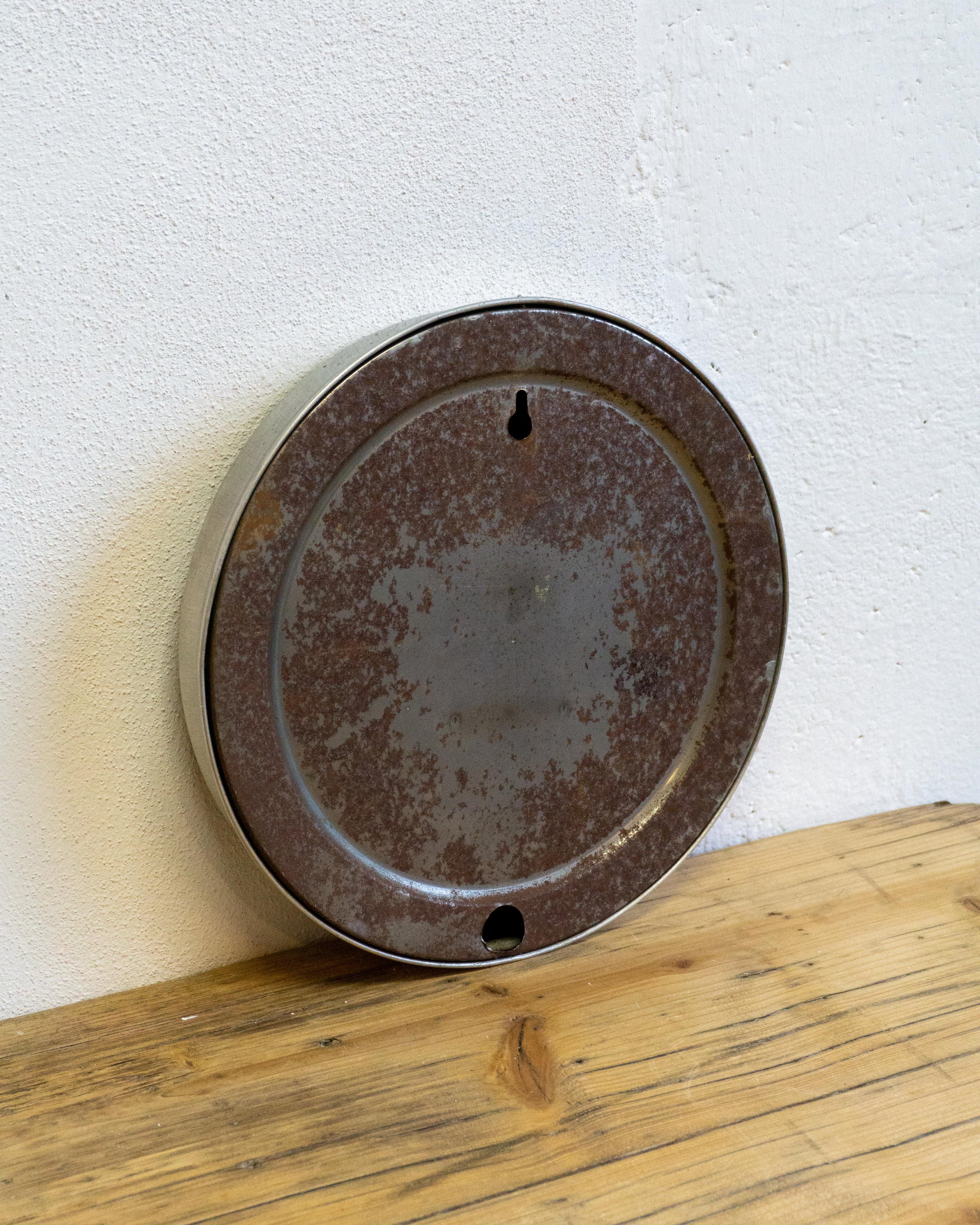 È stato convertito con meccanismo al quarzo tedesco, revisionato e perfettamente funzionante, mantenendo la cassa e il quadrante originali. Un autentico oggetto di design industriale, robusto e decorativo, ideale per arredare ambienti in stile vintage o modernista.